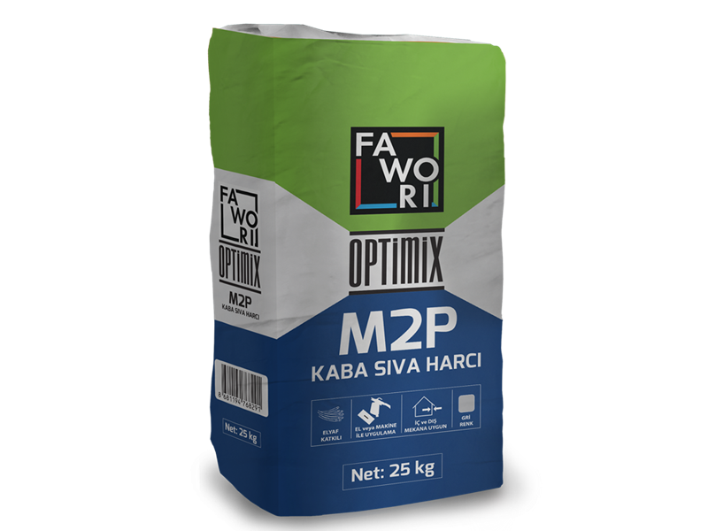 Fawori Optimix M2P Kaba Sıva Harcı, iç ve dış mekanlarda el veya makine ile uygulanabilen, çimento esaslı ve elyaf katkılı kaba sıva harcıdır. Bina yapım esnasında, duvarların örüldükten sonra dış etkilerden (yağmur, don, güneş vb.) korunmasının yanı sıra, düzgün ve sağlam bir yüzey elde edilmesi amacıyla kullanılır.