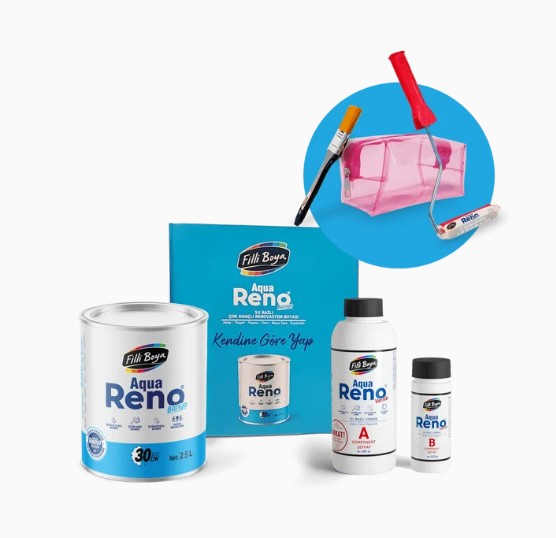 NOT: Paketimizin içeriğinde 1 adet 2.5 litre Aqua Reno Banyo, 1 adet 600 gram Aqua Reno Vernik, 1 adet Aqua Reno Kadife Rulo 10 cm, 1 adet Afilli zemin fırçası ürünlerimiz ve promosyon olarak çanta bulunmaktadır.
